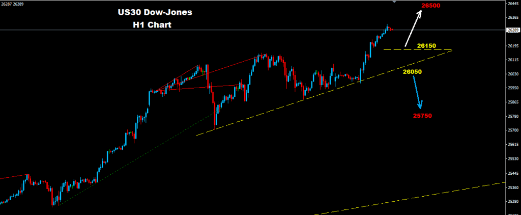طالما السوق متماسك فوق مستويات الدعم 26150 فان مزيد من الارتفاع نحو اهداف 26500 سيكون متوقع