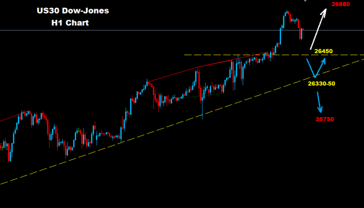 تحت مستويات 26450 ستكون المؤشر الاول على مزيد من التراجع التصحيحي بالسوق حيث سيواجه السوق مستويات دعم اخرى على مناطق 50-26330