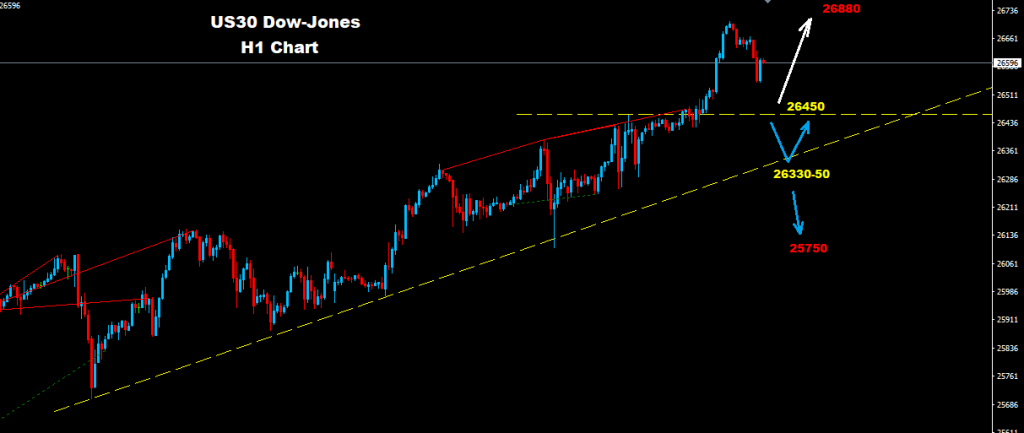 تحت مستويات 26450 ستكون المؤشر الاول على مزيد من التراجع التصحيحي بالسوق حيث سيواجه السوق مستويات دعم اخرى على مناطق 50-26330