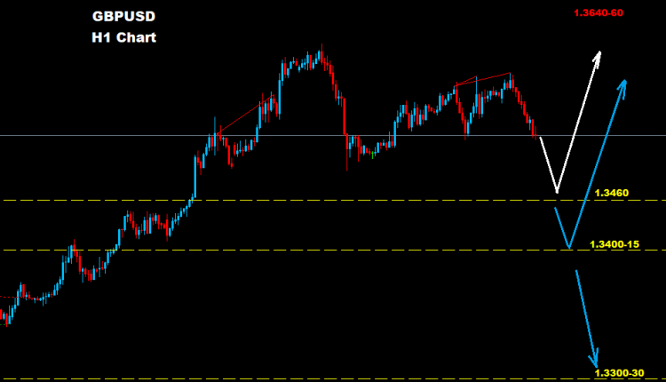 تحت مستويات 1.3400 فان السوق قد يدخل ضمن نطاق موجة تراجع و هبوط قد تستهدف مستويات 30-1.3300