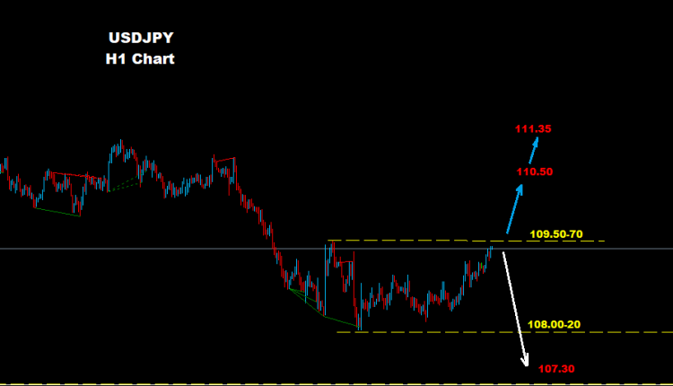 فوق مستويات 109.70 فان فرص مزيد من الارتفاع سيكون متوقع نحو مناطق 110.50 و ربما 111.35