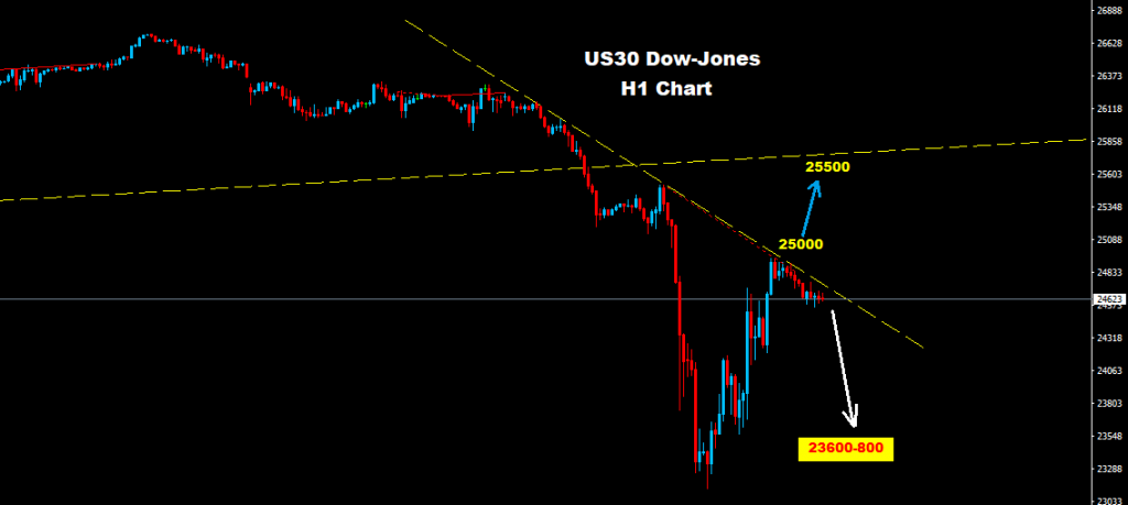 نجح مؤشر الداو بالتوجه لارتداد تصحيحي صاعد متسارع يوم امس مع تواجد السوق في مناطق البيع المبالغ فيه و التي دفعت بارتفاع تصحيحي نحو اهداف مستويات 24800 كما نصحنا له يوم امس