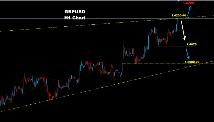 فوق مستويات 1.4240 فان السوق قد يستمر بالارتفاع نحو الاهداف القديمة المحددة الاسبوع الماضي 1.4280