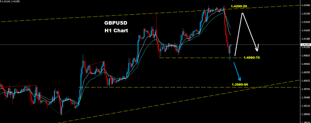 تحت مستويات 1.4060 فان مزيد من التراجع قد يطرا لاختبار مستويات الدعم 90-1.3980
