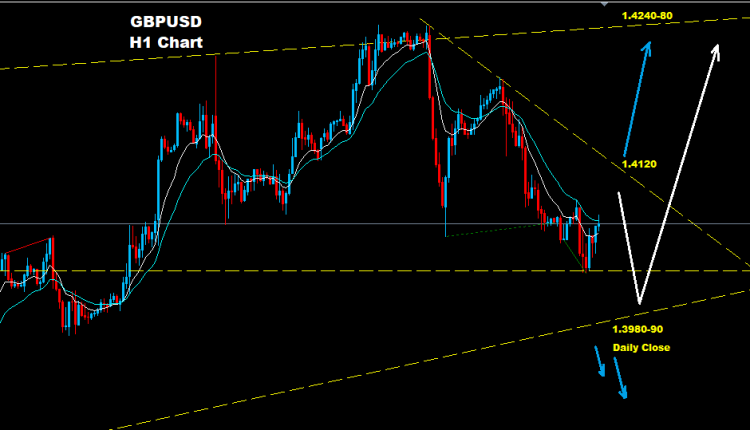 كما نرى على الرسم البياني فان مستويات الدعم 90-1.3980 ان تمكنت من دعم السوق فان موجة ارتفاع جديدة قد تطرا نحو مناطق 80-1.4240