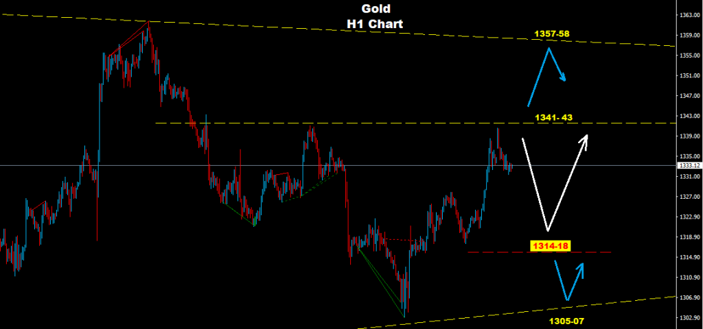 نجح المعدن الثمين بالتراجع من مستويات المقاومة 42-1341 حيث نجح بضرب الاهداف الاولى لمستويات 18-1314
