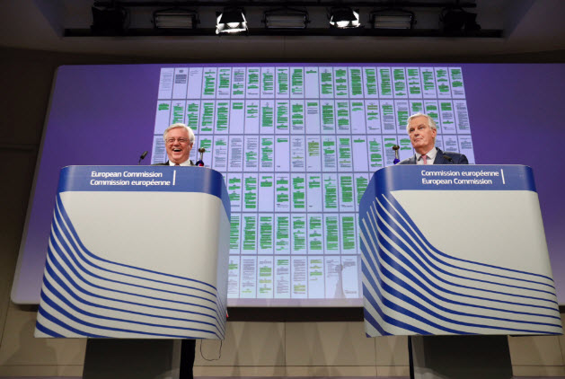 وقد إجتمع ديفيد ديفيس الوزير البريطاني المفاوض للبريكست وأمين سر البريكست والمفاوض الأوروبي الكبير ميشيل بارنييه أمام الصحفيين في بروكسل .