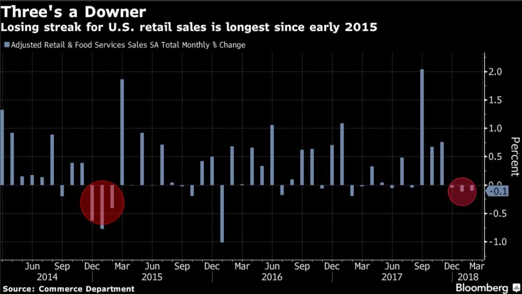 سجلت مبيعات التجزئة في الولايات المتحدة تراجعا في يناير مع تراجع الطلب على السيارات ومواد البناء , حيث صدر تقرير وزارة التجارة الأمريكية يوم الأربعاء ليشير الى انخفاض في مبيعات التجزئة عند 0.3 % للشهر الماضي وهو أكبر انخفاض منذ فبراير 2017. كما عدل تقرير وزارة التجارة بيانات شهر ديسمبر لتشير الى استقرار المبيعات بدلا من ارتفاع قدره 0.4 % في القراءة السابقة التي تم الاعلان عنها .