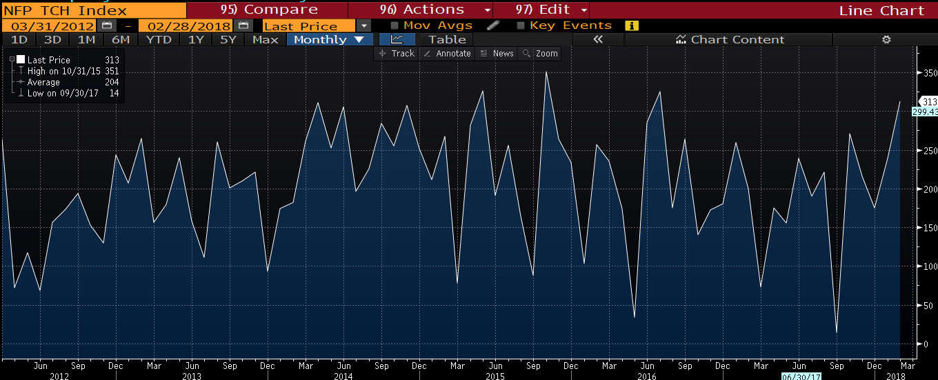 و أظهر التقرير إستمرار بقاء معدل البطالة عند نفس النسبة 4.1% في فبراير كما كان في الاشهر الاربعة الاخيرة وهو أدنى مُستوى مشجل منذ عام 2000 في حين كانت تشير أغلب التوقعات يوم الجمعة لتحسن نسبة البطالة في فبراير الى مستويات 4% , كما إرتفعت نسبة المشاركة الى 63% في فبراير في حين كان متوقعا ان تشهد تراجعا الى 62.5% من 62.7% وهي النسبة المسجلة أيضا في الاشهر الاربعة الاخيرة .