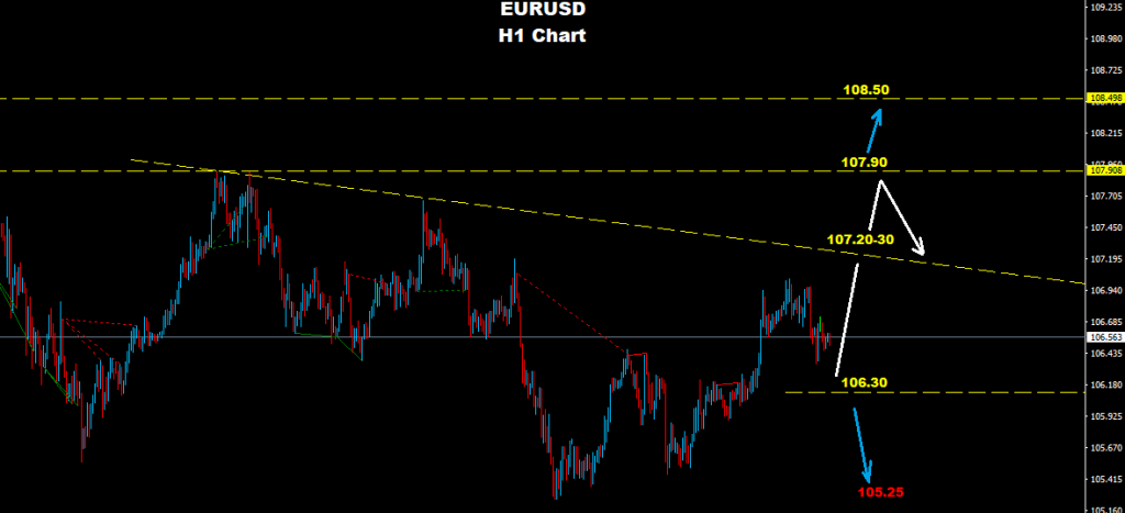تحت مستويات 106.30 فان ضغوط الهبوط قد تعود للسيطرة على السوق للتوجه لمستويات 105.25 و ربما 104.50