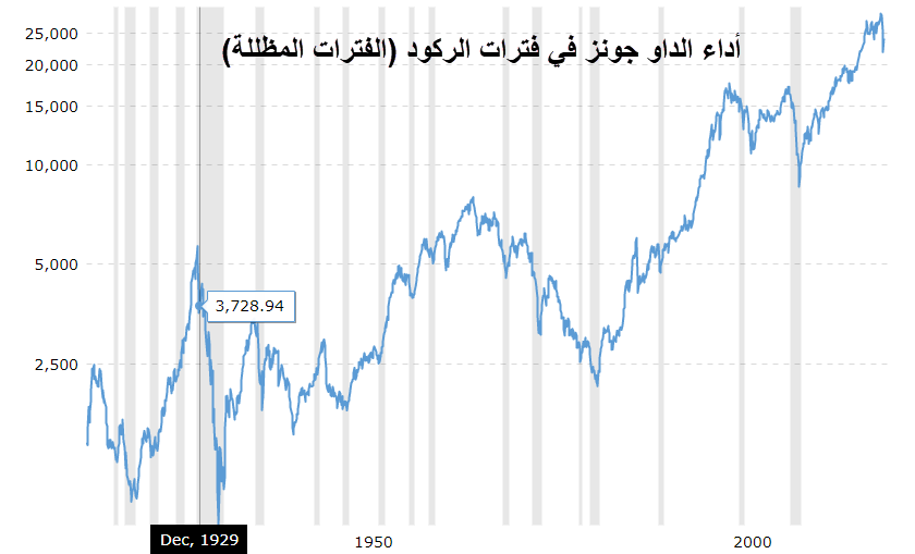 بالرغم من اختلاف وضع الاقتصاد الأمريكي في هذا الوقت، إلا أن مؤشر الداو سجل ارتفاعات بنحو 40% خلال نفس الفترة بعد تراجعه بنحو 22%. ويجب الانتباه لتلك الملاحظة.