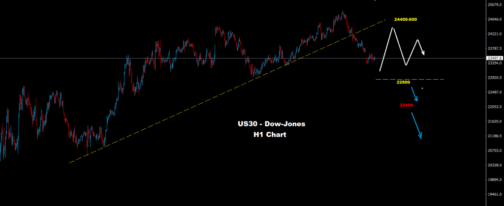 تحت مستويات 22900 فإن فرص مزيد من التراجع والهبوط قد تطرأ مع مستويات دعم على مناطق 22400، في حين وتحت هذه المستويات فإن موجة تراجع جديدة قد تضرب السوق نحو مناطق 21500