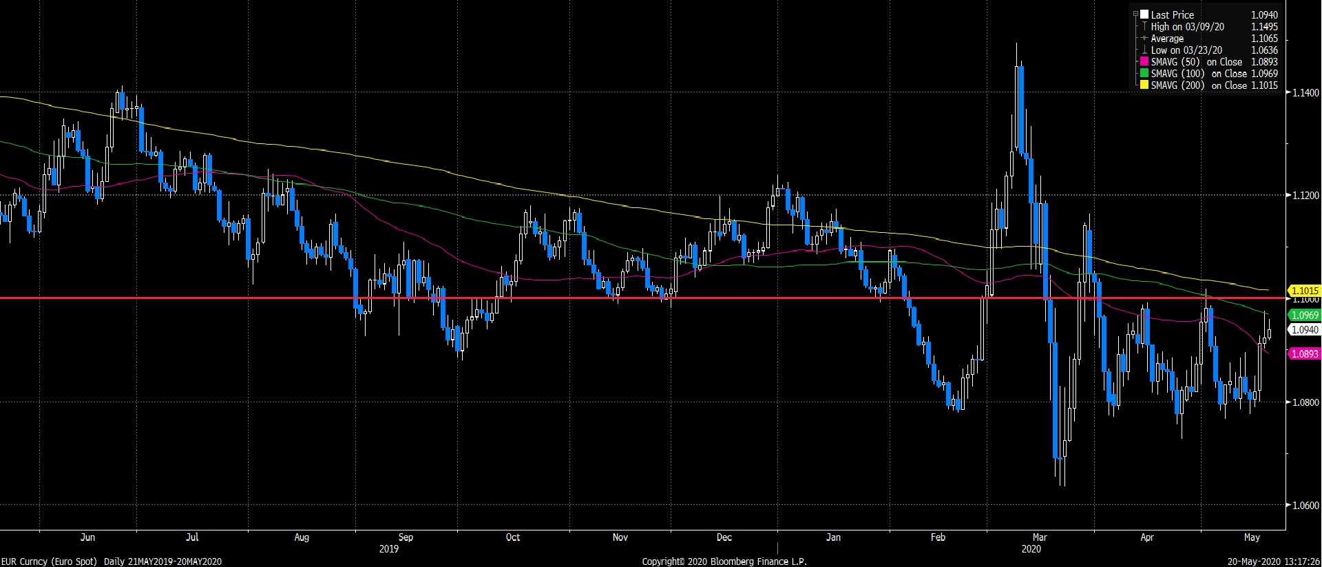 ارتفع اليورو هذا الأسبوع بعد أن قدم صندوق إغاثة فيروس كورونا الذي اقترحته فرنسا وألمانيا دفعة إيجابية لتوقعات العملة الموحدة.
