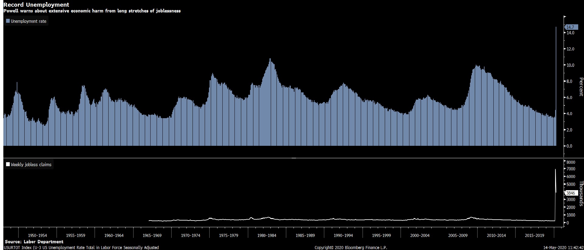 وأضاف أن الاحتياطي الفيدرالي سوف ينشر مسحاً اليوم الخميس يظهر أن ما يقرب من 40٪ من الأمريكيين في الأسر التي تكسب أقل من 40 ألف دولار سنوياً قد فقدوا عملهم في مارس.