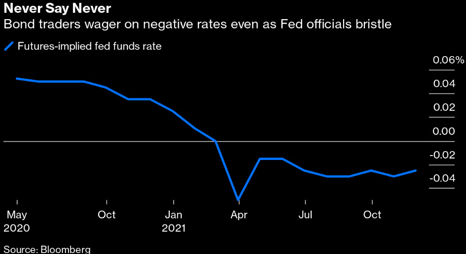وسط مثل هذه النظرة المظلمة يراهن بعض المستثمرون على أن الفيدرالي قد يتبع البنوك المركزية الأخرى في أخذ أسعار الفائدة إلى المنطقة السلبية لتحفيز الإنفاق.