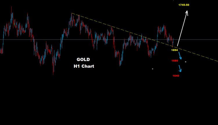 تحت مستويات 1694 فإن ضغوط الهبوط والتراجع ستعود حيث تتواجد مستويات دعم على أسعار 1680 و1640