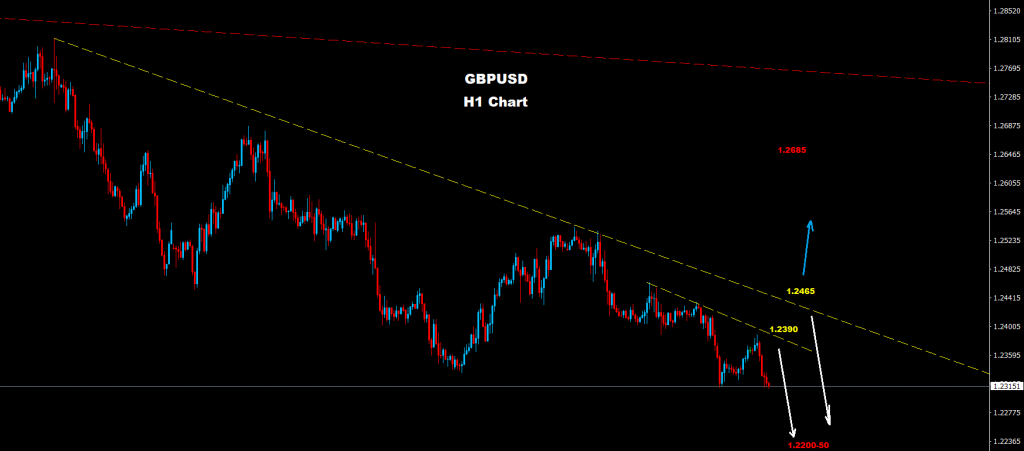 كما نرى على الرسم البياني فإن الجنيه يواجه مستويات مقاومة على مناطق 1.2390 و1.2465 والتي طالما السوق متماسك تحت إحداها فإن مزيد من التراجع والهبوط نحو مناطق 1.2250 و1.2200 سيكون متوقعاً.