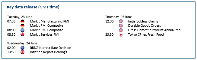 بدأت علامات مشجعة تظهر في نهاية فترة إغلاق بريطانيا، حيث قفزت مبيعات التجزئة بنسبة ١٢٪ في مايو. ورغم ذلك فإن الجنيه الإسترليني ينخفض إلى مستويات أدنى مع تحويل الأسواق انتباهها نحو محادثات خروج بريطانيا من الاتحاد الأوروبي.
