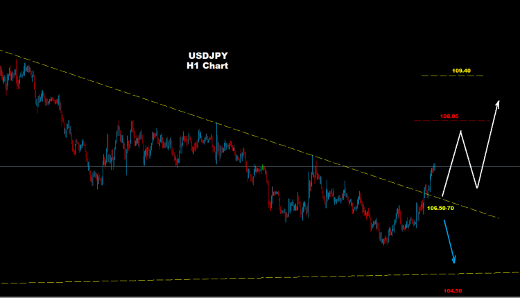 تحت مستويات 106.50 فإن السوق قد يعود تحت ضغوط الهبوط والتراجع حيث تتواجد مستويات الدعم على مناطق 105.50 و104.50