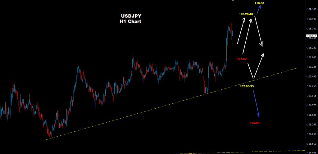 نجح الدولار/ين أيضاً بالحفاظ على تقدمه حيث ضرب مستويات عليا لمناطق 108.83 حتى الآن