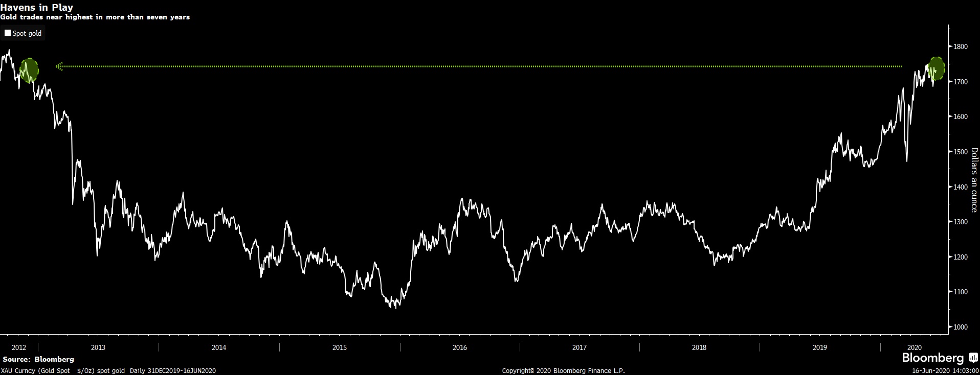 كما حصل المعدن الثمين على ارتفاع من المخاوف بشأن تفشي المرض من الجديد في الولايات المتحدة والصين، بالإضافة إلى ضعف الدولار.