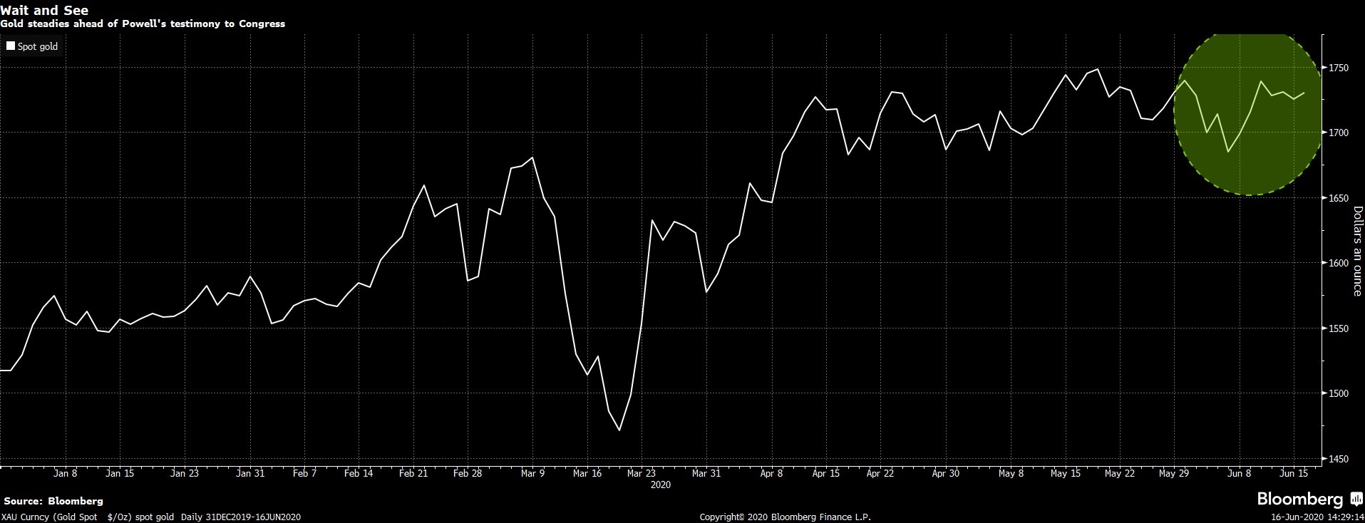 استقر الذهب مع مع ترقب المستثمرين لشهادة من رئيس مجلس الاحتياطي الفيدرالي “جيروم باول” بشأن الخطوات التالية للبنك الفيدرالي لمكافحة الضربة الناجمة عن جائحة فيروس كورونا.