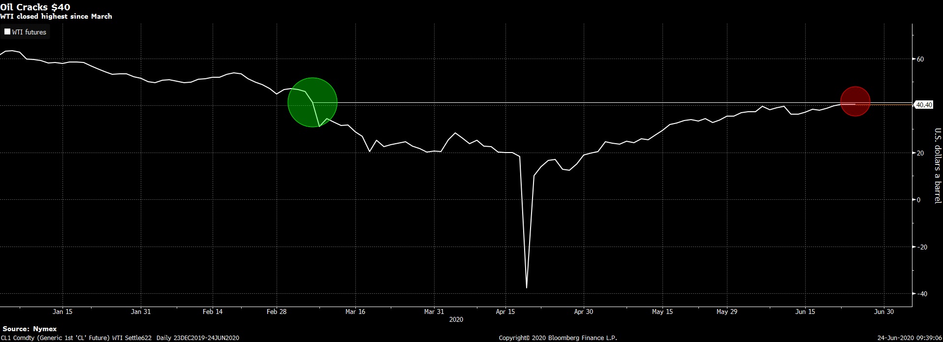 وارتفعت الأسعار في الأيام الأخيرة مع تقدم الدول إلى الأمام مع إعادة فتح تدريجي حتى مع تزايد المخاوف بشأن خطر حدوث موجة ثانية من الوباء.