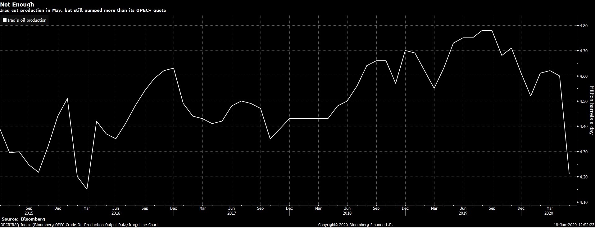 في حين يبدو أن العراق المتأخر عادة يخفض إنتاج النفط ليفي بحصة “أوبك+”. إلا أنه لم يحقق سوى نصف التخفيض المخصص له، حيث ضخ 4.165 مليون برميل يومياً، وفقاً للتقرير من المنظمة.