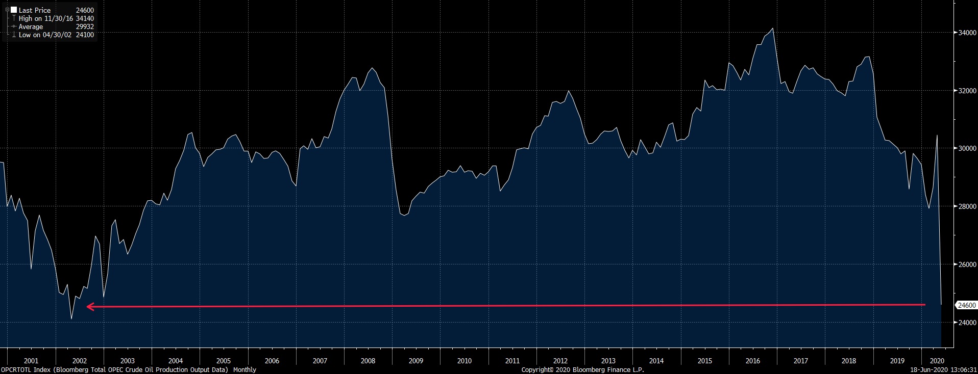 كان لتخفيضات “أوبك+” بمقدار 9.7 مليون برميل في اليوم تأثيراً إيجابياً متواضعاً على أسعار النفط حتى الآن. وليس أقلها لأن كمية النفط الخام المخزنة في جميع أنحاء العالم لا تزال مفرطة إلى حد ما.