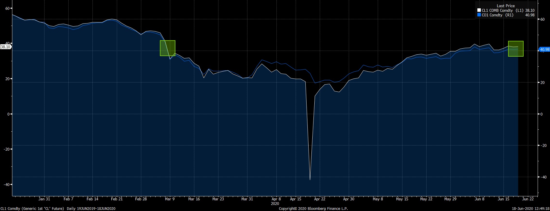 أظهر سوق النفط علامات على تشديد الإمدادات مع ارتفاع المقاييس الرئيسية لصحته، وهذا على الرغم من استمرار المخاوف بشأن عودة ظهور حالات إصابة جديدة بفيروس كورونا في الصين والولايات المتحدة.