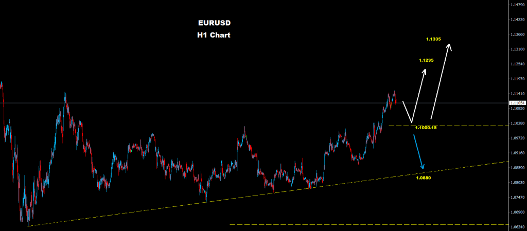 تحت مستويات 1.1000 فإن مزيد من التراجع والهبوط لاعادة اختبار مستويات الترند الصاعد حول مناطق 1.0880 قد تضرب السوق