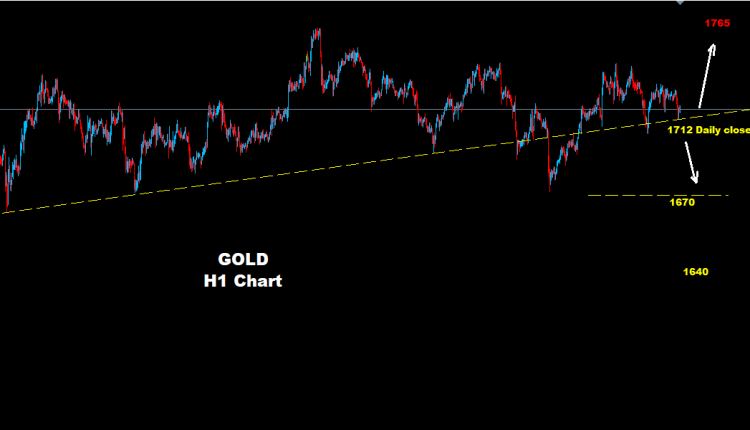 نجح المعدن الثمين بالحفاظ على إغلاقاته اليومية فوق مناطق 1712 والتي تحافظ على سيناريو الصعود بالسوق.
