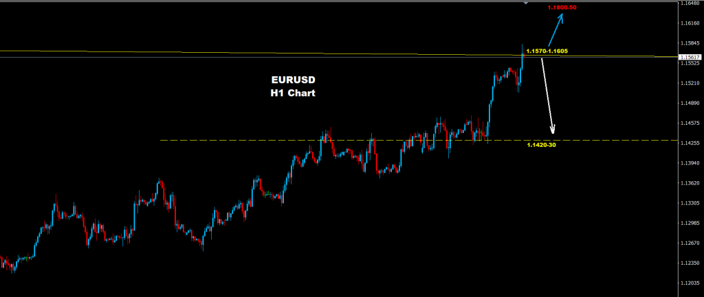 كما نرى على الرسم البياني فإن منطقة مقاومة تتواجد حول مناطق 1.1605-1.1570 والتي قد تنجح بالدفع بتراجع تصحيحي نحو مناطق 30-1.1420