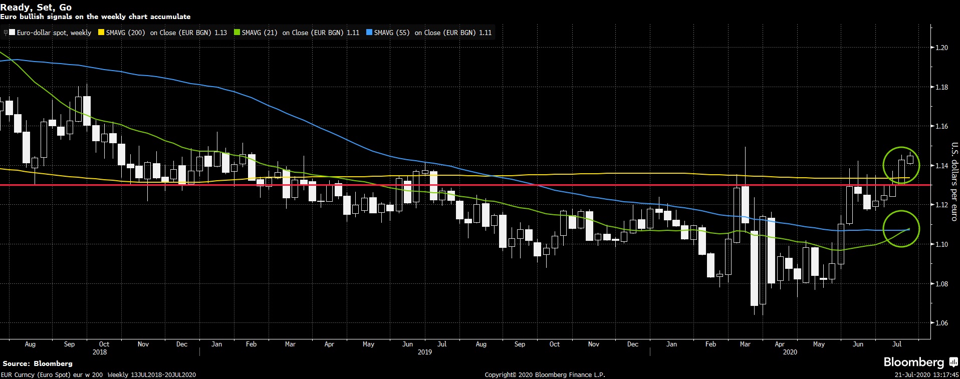 وبقي اليورو دون مستوى 1.15 مقابل الدولار حتى بعد أن وافق قادة الاتحاد الأوروبي أخيراً على حزمة تحفيز تاريخية، ومع ذلك لا ينبغي تفسير ذلك على أنه علامة ضعف.