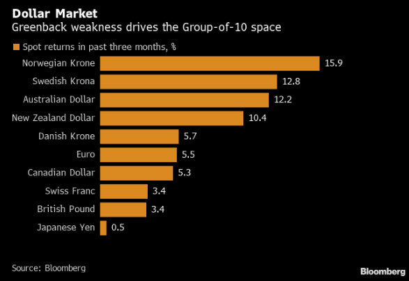 بل يرجع جزء كبير من الحركة إلى ضعف الدولار مع وجود العملة المشتركة في الواقع في منتصف جدول مجموعة العشرة عندما يتعلق الأمر بالمكاسب مقابل الدولار
