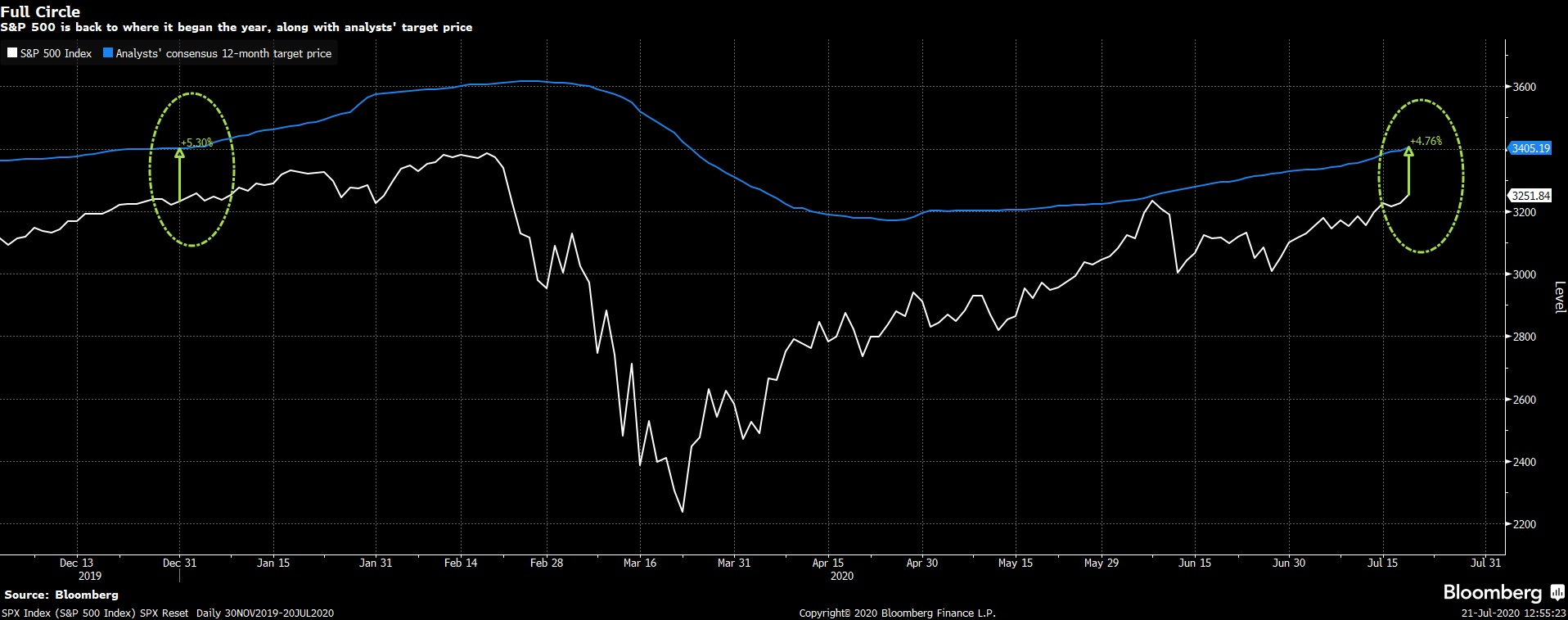 حيث أغلق مؤشر “ستاندرد آند بورز 500” يوم الاثنين أعلى بقليل من حيث بدأ هذا العام، وهذا يعني أن المحللين يرون أن مؤشر الأسهم يكسب ما يقرب من 5٪