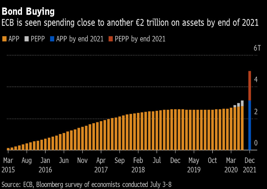 فمن المتوقع على نطاق واسع أن يبقي مجلس الإدارة على برنامج الطوارئ لشراء السندات دون تغيير عند (1.35 تريليون يورو)، ومكملاً بذلك البقاء على أسعار فائدة سلبية وقروض سخية طويلة الأجل للبنوك.