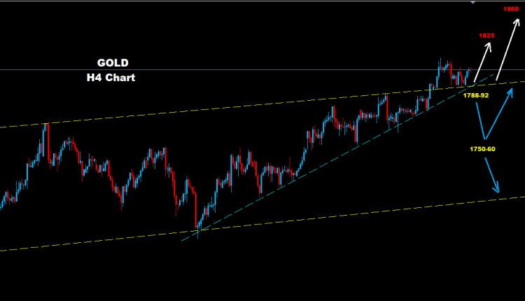 نجح المعدن الثمين بضرب أسعار فوق مستويات 1803 والتي قد تدفع بموجة صعود جديدة نحو مناطق 1825 و 1860