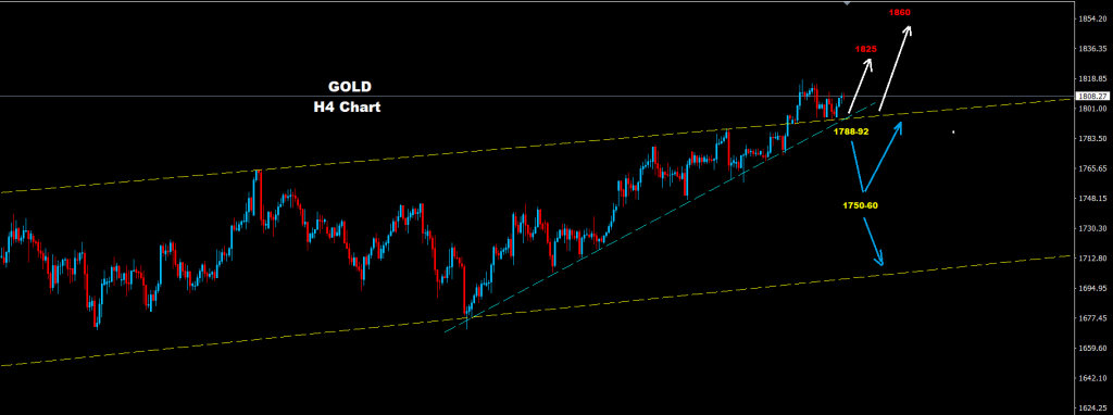 نجح المعدن الثمين بضرب أسعار فوق مستويات 1803 والتي قد تدفع بموجة صعود جديدة نحو مناطق 1825 و 1860