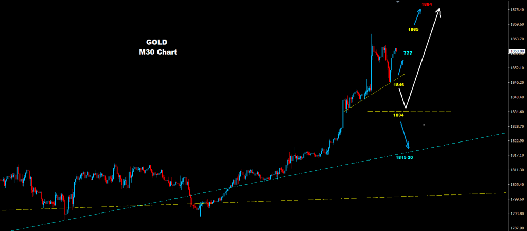 من تلك المستويات فإن الأهداف الجديدة للذهب ستصبح باتجاه مناطق 1884 و 1900 بالاعتماد على الأسعار الدنيا الذي سيصعد منها السوق