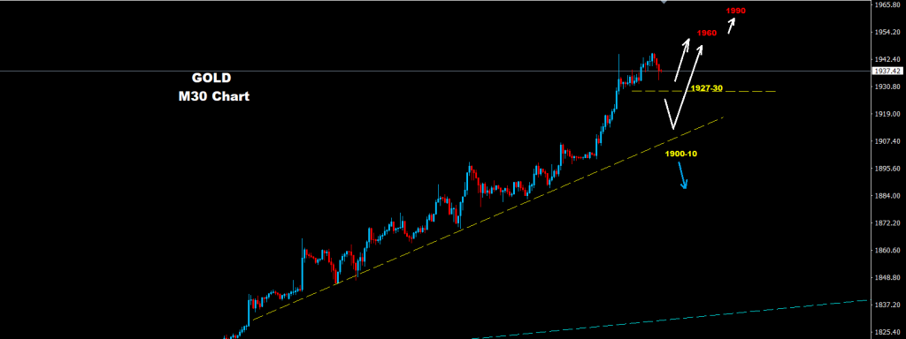 نجح المعدن الثمين بمواصلة الصعود نحو أهداف 1902 و 1920 كما أشرنا له الأسبوع الماضي