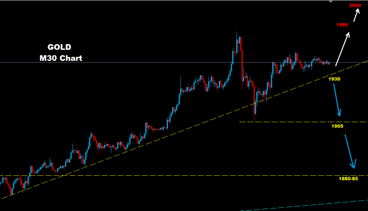 نجح المعدن الثمين بضرب أولى الأهداف لمستويات 1950 كما أشرنا له يوم أمس