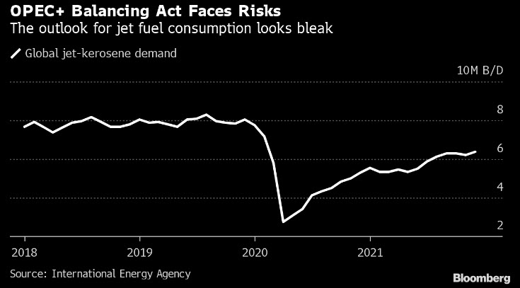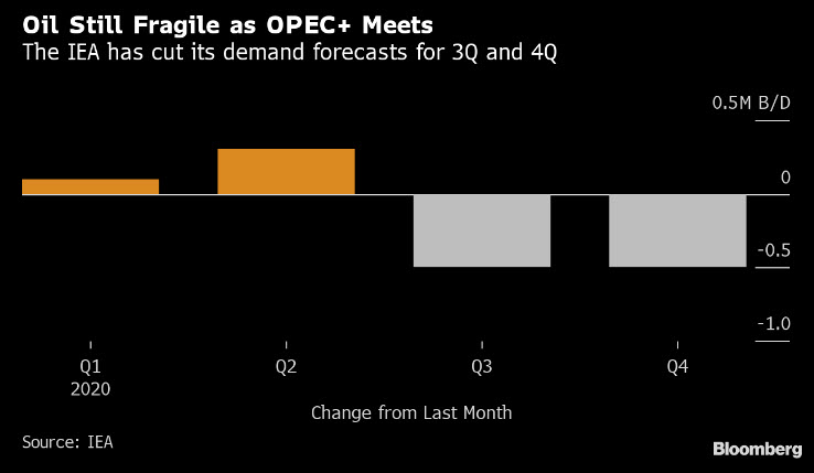 كما خفضت وكالة الطاقة الدولية وهي واحدة من كبار خبراء التنبؤ في العالم توقعاتها للطلب في النصف الثاني الأسبوع الماضي بمقدار 500 ألف برميل يومياً مع ضعف السفر الجوي.