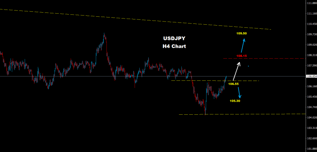 نجح الدولار/ين باختراق حواجز المقاومة 106.55 حيث أشرنا سابقاً فوق هذه المستويات فإن مزيد من الارتفاع قد يسيطر على السوق نحو مناطق 107.25 و 15-108.00
