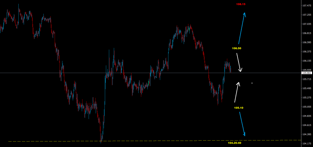 تحت مستويات 105.10 فإن مزيد من التراجع قد يطرأ لاختبار حواجز دعم 40-104.20
