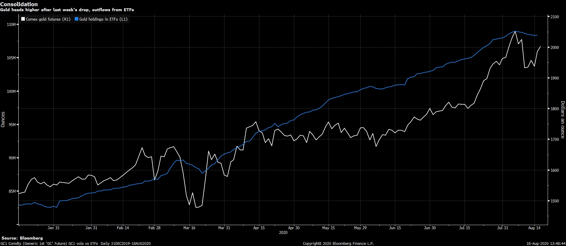 أيضاً شهدت صناديق التحوط الاستثمارية المتداولة في الذهب تدفقات داخلة بعد أن شهدت تدفقات خارجة الأسبوع الماضي، وارتفعت أيضاً مقتنياتها من صناديق الاستثمار المتداولة بالفضية إلى ارتفاعات جديدة.