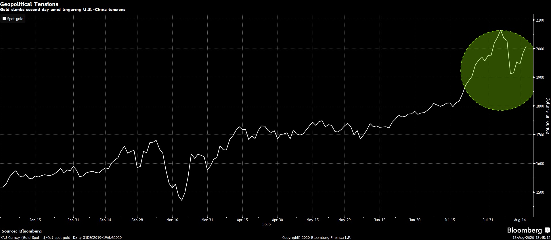 عاد الذهب مرة أخرى فوق مستوى 2000 دولار للأونصة هذا الأسبوع بنسبة تجاوزت 4.7% حيث عززت التوترات المتجددة بين الولايات المتحدة والصين الطلب على أصول الملاذ الآمن وضعف الدولار.