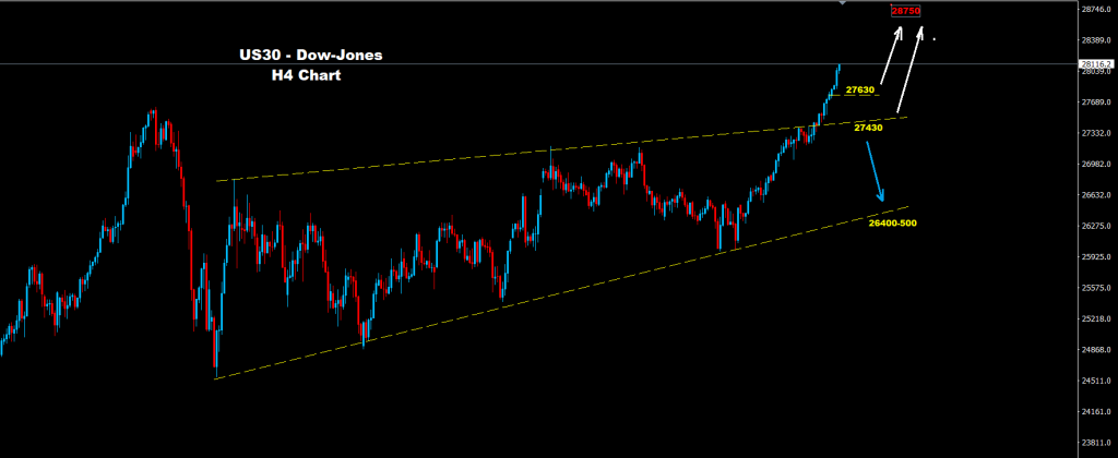 مستويات الدعم تتواجد على مناطق 27630 و 30-27400 والتي طالما السوق متماسك فوق إحداها فإن مزيد من الصعود سيكون متوقع نحو مناطق 28750