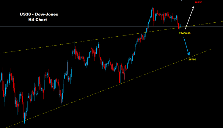 تحت مستويات 27400 فإن مؤشرات التراجع والهبوط قد تتزايد مع حواجز دعم على مستويات 27000