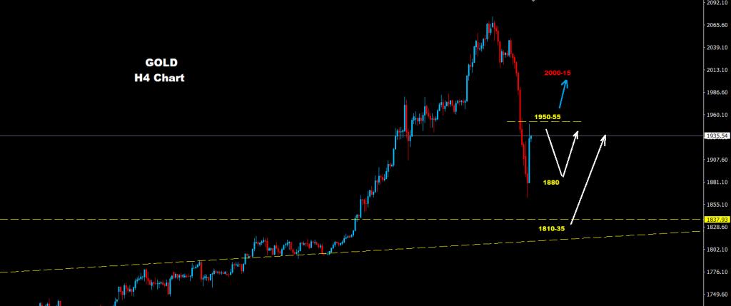 تحت مستويات 1880 فإن فرص مزيد من التراجع ضمن محاولات اختبار حواجز دعم 35-1810 قد تضرب السوق والتي بدورها أيضاً قد تعيد الموجة الصاعدة على السوق